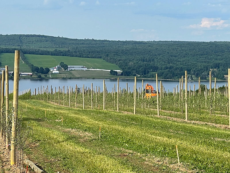 The farm is located 3 miles west of Kings Landing on Rte. 102. The farm has grown from 10 acres in 2016 to now 50 acres of apples and pears. Apple production includes Honey Crisp, Ambrosia, Ginger Gold, Sunrise, Paula Red, Lobo, Cortland, McIntosh, and older varieties such as Dudley, Wolf River and Brunswick. Our Pears include Flemmish Beauty, Clappe, and Bartlett varieties.